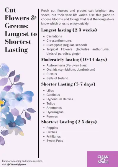 Download this guide to learn more about your favourite flowers, which ones last the longest and which ones give you the biggest bang for the buck, and which ones are the shortest lasting!!